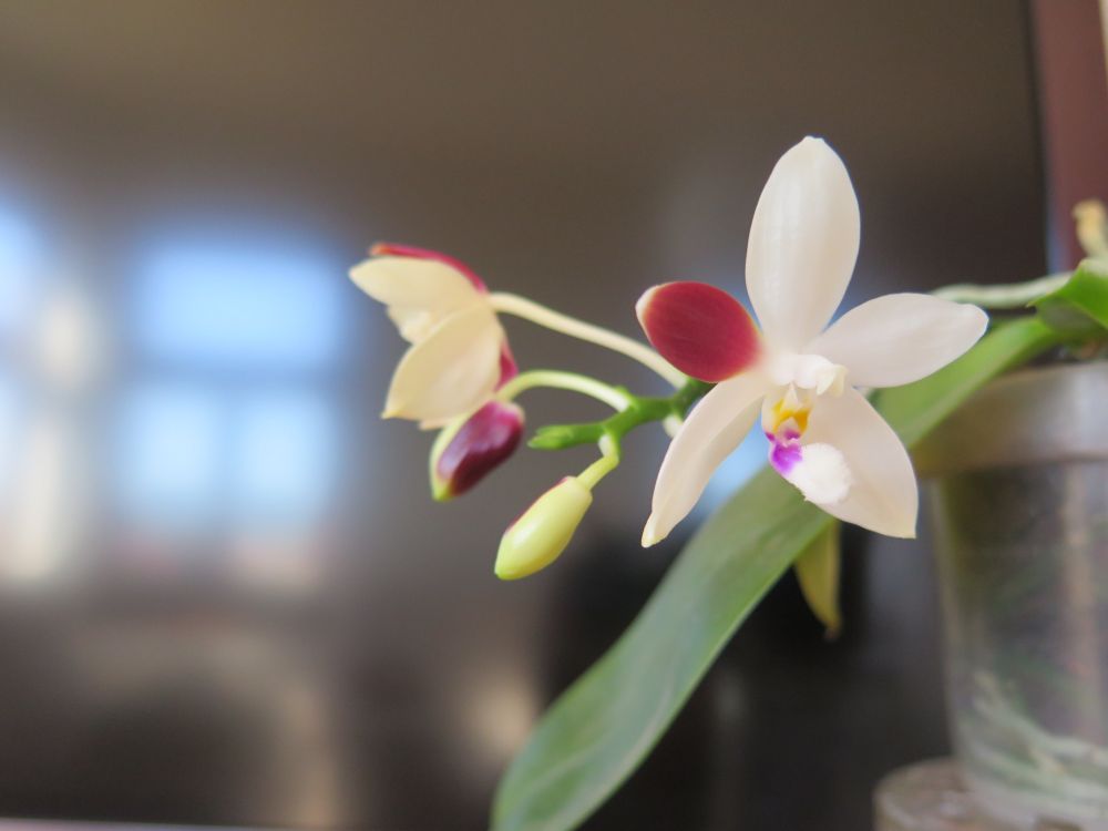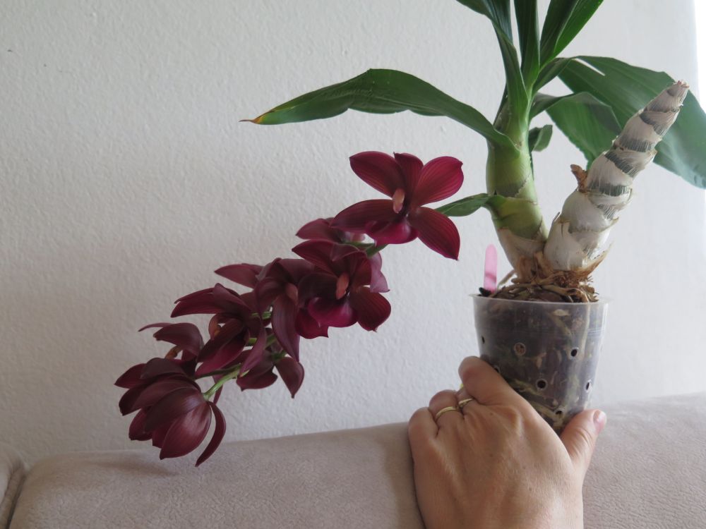 Ph.tetraspis už je odkvetlé, zapomněla jsem sem dát fotky. Proč byla tahle várka květů červenější - netuším. Je na stejném místě, snad jen že mělo přes léto při nasazování poupat víc světla. Cycnodes jsem letos dělila, ani jsem nečekala, že nasadí. Překvapil. Martina