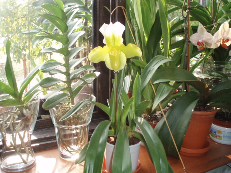 dnes mi rozkvetlo paphiopedilum a roste dalsi kvet z druhe rostliny. bohuzel ale nevim jmeno.