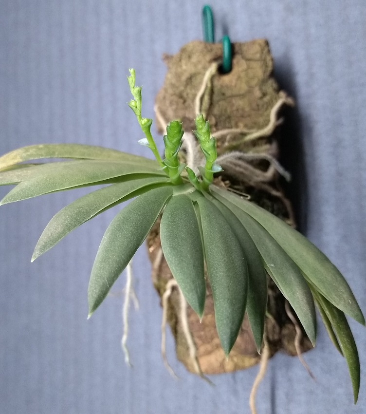Tuto kytičku jsem pořídil před šesti lety jako P. micranthum a teď se poprvé chystá kvést. Zřejmě tomu pomohlo, že jsem se loni zatvrdil a zimoval ji u kaktusů při 5°C. Tak teď už to snad dotáhne...