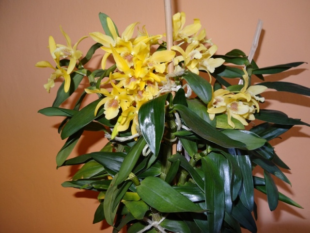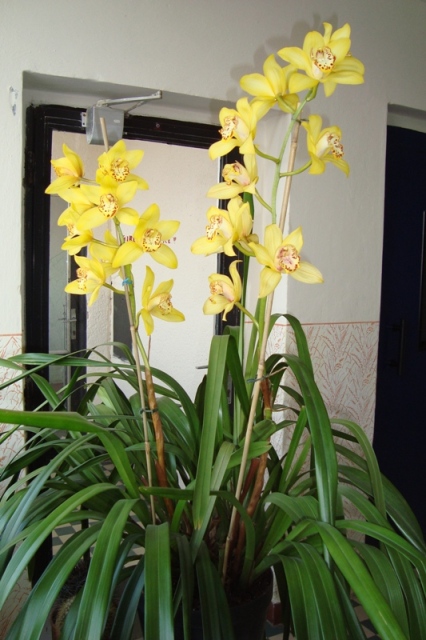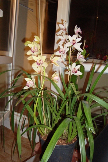 Vykvetlo mi Cymbidium mini, předloni jsem ho koupil v OBI "zasviněné" od svilušky. Dostalo chemickou léčbu a odvděčilo se mi 8 květními stvoly.