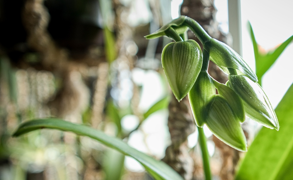 Letos to vypadá, že se Angraecum sesquipedale pochlapí. Mám čtyři květné výhony. Zatím jsem měl nejvíce tři.