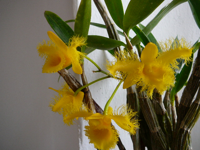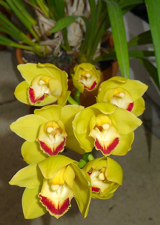 Marta1: Zajímavá anomálie na tom pysku. Jinak hezké kvetení! Virens: Ta cihlově červená barva na květech orchidejí mne stále více dostává. Kvetení super!! Také něco přidám: Harlekýnek od Karlose, Dendrobium pendulum na podzim získané + hybridní Cymbo.
