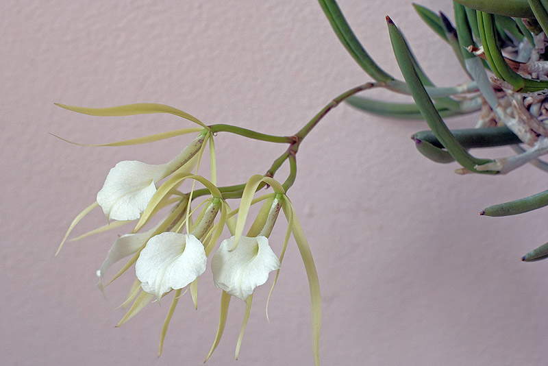Tu Encyclii fragrans mám také, ale vůbec mi nejde a ani se s ní nemůžu chlubit. Máš jí předpokládám ve skleníku, když je navázaná? Nevím si sní rady a přitom to je moc pěkná kytka. Poraď, mám jí navázat? Ale bylo by to jenom přes léto zasklený balkón, přes zimu místnost, kde je okolo 15°C....