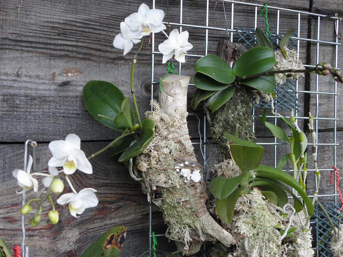 No pozor. Phalaenopsisy většinou chvíli rostou i na větvi v prostorách s nižší vlhkostí, ale spíš to bude jen krátkodobý klam, protože využívají vodu a energii, nashromážděnou z období kdy rostly v květníku. Postupně ale kytky ztrácí tu pevnost listů a jsou povadlé, pak ale přestávají růst. Epifytická kultura samozřejmě je možná, ale na parapetu či venku to může být problém. Vemte si že jsou to rostliny z doslova nejvlhčích částí planety a i když mohou růst na holé větvi, kořeny mají dlouhodobě vlhké. Osobně si myslím že je Hanka nakonec ještě ráda vrátí do květníku:-)