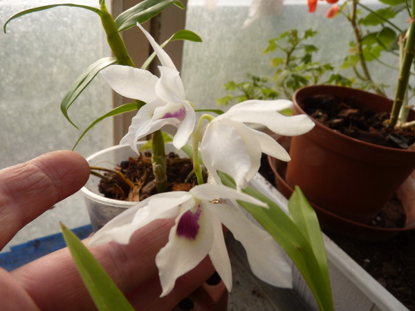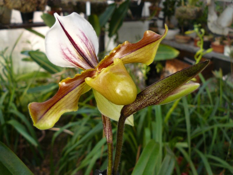 To mi včera koupil můj mangel angel - ještě jednou ty pafíky zkusím Paphiopedilum Leeanum   a znova rozkvetla moje orchiška s nejmenšími květy Lockhartia lunifera