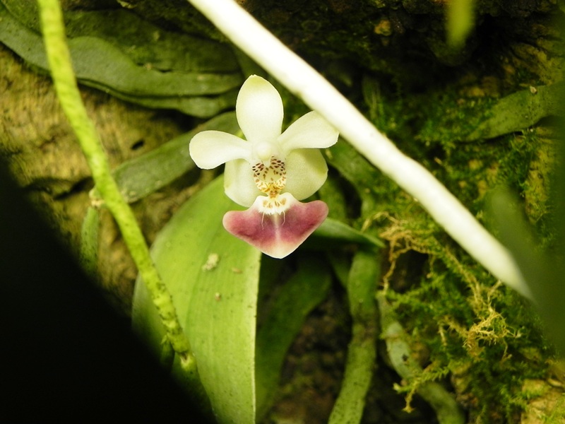 Dnes rozkvetl prcek Phalaenopsis parishii , opět ve vitríně, je koupený v zimě 2011 a ani jsem nedoufala, že někdy pokvete, roste přímo na pozadí, vzadu ve vitríně a nevím proč, nepřirůstaly mu listy , ale kořeny v masivním množství, asi by bylo více květů, ale zas to požral mrcha slimák ( dnes jsem dala sežrat rybám jednoho tak 2cm) na druhé fotce je vidět částečně to množství kořenů