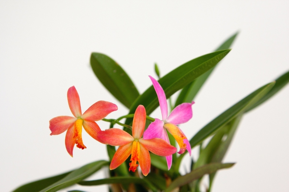 sophronitis mantiqueira x laelia reginae, kvitne nonstop. uz treti stvol vyhnal. farba kvetu sa meni od oranzovo-hnedej, cez ruzovu az po tmavoruzovu.