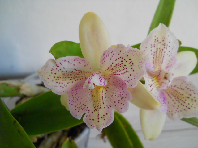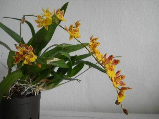 Nový přírustek z Drážďan- Phalaenopsis philippinensis. Podařilo se mi z více rostlin vybrat i docela hezkou kresbu na listech. Doufám, že mi tyto teplomilné kytky vydrží a že nenastydnou  A také mi rozkvetlo Dendrobium unicum-jedno z mých oblíbených. Tento druh kvete bohatě, dlouho a nejsou s ním žádné problémy kromě toho že když se při kvetení přestane zalévat tak se dokáže ukvést k smrti.