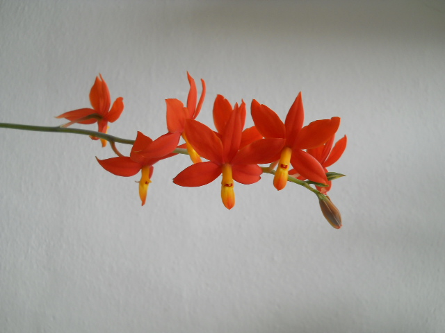 Něco hybridního i nehybridního kvetení: Diacattleya Chantilly Lace, Dendrobium Rainbow Dance, Encyclia vitellina, Howeara Mini Primi