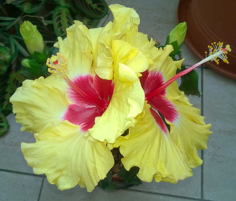 Posílám snímek obyčejného ibišku. Průměr květů je 20cm  Loni na podzim ale měl květy asi 24cm. Rostlina je ale pidi- takže není za květy vůbec vidět.