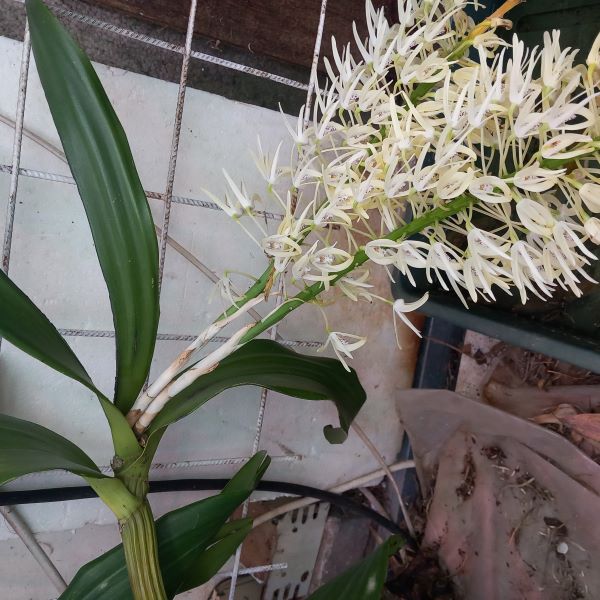 cheron píše: Mila.J - parádne Dendro ! Mám tiež D. spec. var. curvicaule 'Golden Peninsula Princess' Zatiaľ nekvitlo. V lete som ho "smažil" na balkóne JZ strana, rozptýlene svetlo, nie priame slnko, ako sa často doporučuje (bojím sa, že ho spálim). Teploty takmer 40°C cez deň. 1 phl vytvorila malé puzdro, ale nekvitla, tak neviem, či sa dočkám kvitnutia z tej phl tohto roku (vraj nakvitá aj 2-3x z 1 phl.?). Teraz ho mám v byte na podlahe pri balkón. dverách na mikroventiláciu, teplota cez deň tak 20 a v noci 18°C. V aké podmienky má u Vás ?? Pridávam odkaz na PDF súbor, kde sú na porovnanie kvety: https://anos.org.au/wp-content/uploads/2023/08/Dendrobium-speciosum-Jon-Cara.pdfA jeden odkaz na stánky venované (nielen) D. speciosum: https://therocklilyman.com/cheron , dík za info. Snad se nejvíc blíží klasické variantě speciosum . Přesné to není. Možná za jiných kultivačních podmínek. V létě venku jsem ji připálil. Několik listů. Tu druhou rostlinu, věděl jsem, že má být speciosum, jsem nechal přes zimu v chladnější části s D. kingianum . Nelíbí se jí tam, viz. foto. Chladná Austrálie , ale ono to tak chladné nebude. Nemyslím, že to mělo jít přímo k teplým , ale nejchladnější orchidej to nebude. Asi se nelíbí skapávání při teplotě nižší 10°C. Dost svítím. Ta kvetoucí je dost velká , neskladná , tak jsem na ni moc hodný nebyl. Trochu jsem zlepšil svícení v okolí. Myslím, že to byl hlavní důvod proč vykvetla. Dokáže tvořit více květních puků. Většinou zaschnou. Vykvetly mi dva vedle sebe (foto) , na další pahlíze jeden. Vyvíjelo se jich ale víc. Zaschly , možná po mechanickém poškození , mozná přirozeně. I ty tři se vyvíjely dlouho, rostlina na ně neměla dost sil. Sodíkové výbojky mi na chvíli zvednou teplotu nad 20 i 25°C .Většinou mají něco nad 10°C . Elektřina je drahá, víc teď nedám. Při tomto přes zimu přírůstky nevalné. Líp nelze. Jsem zvědav , jestli vám vykvete. Je to známý nekvět , až tak teplé to taky nebude. Jestli by se to dalo zlepšit opravdu aktivním svícením nevím. Zkoušet to nebudu. Průběžně provádím změny světel. Některé přidávám, jiné zase z úsporných důvodů omezuji. Některé rostliny reagují mírně líp , ne všechny. Nevím, jestli to nebylo hystoricky jediné kvetení.