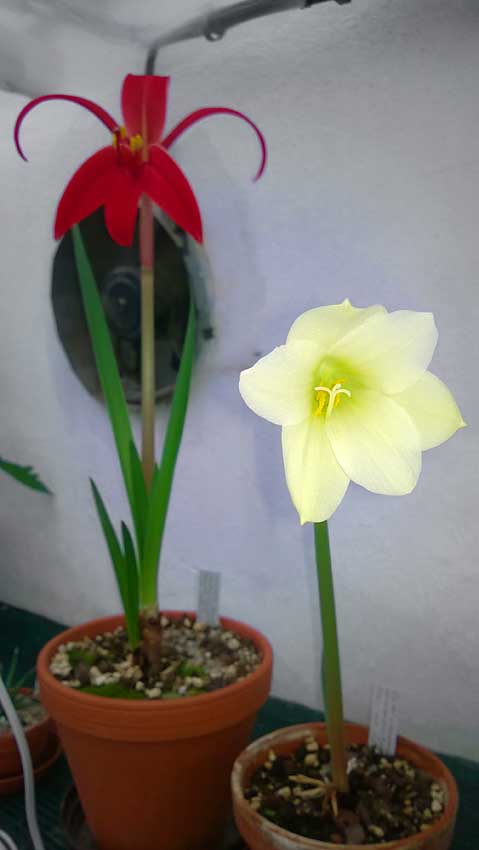 Míla: Ještě mám něco, asi nějaký Zephyranthes nebo co to je. Nemá to žádné listy ale kvete to. Obě jsou imp. z Mexika a mají svou lokalitu. Pěstuji je v keramických květináčích a zimuji s kaktusy. Vodu v zimě téměř nedostávají, jen příležitostně něco cvrnknu do květníku aby to nepřeschlo. Ve vegetaci zalévám jako ostatní kytky typu Monstera deliciosa- aby to mezi zálivkami úplně nevyschlo. Jo a ta Coelogyne dayana má 15květních stvolů. Sušení je podle mne u tohoto druhu prospěšné a vede k bohaté násadě květů. Dokonce ani přesazení v lednu ji nezastavilo  Až pokvete tak to cvaknu.