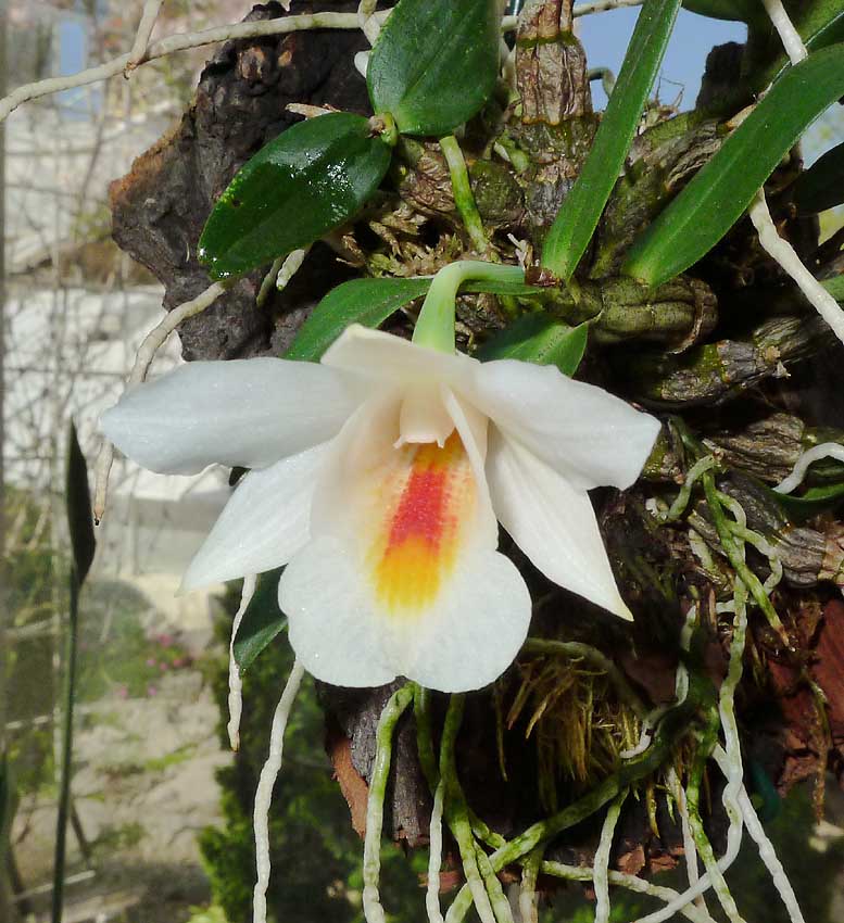 Právě mi rozkvetlo Dendrobium margaritaceum- připadá mi ale že nějak opožděně. Krásně voní.