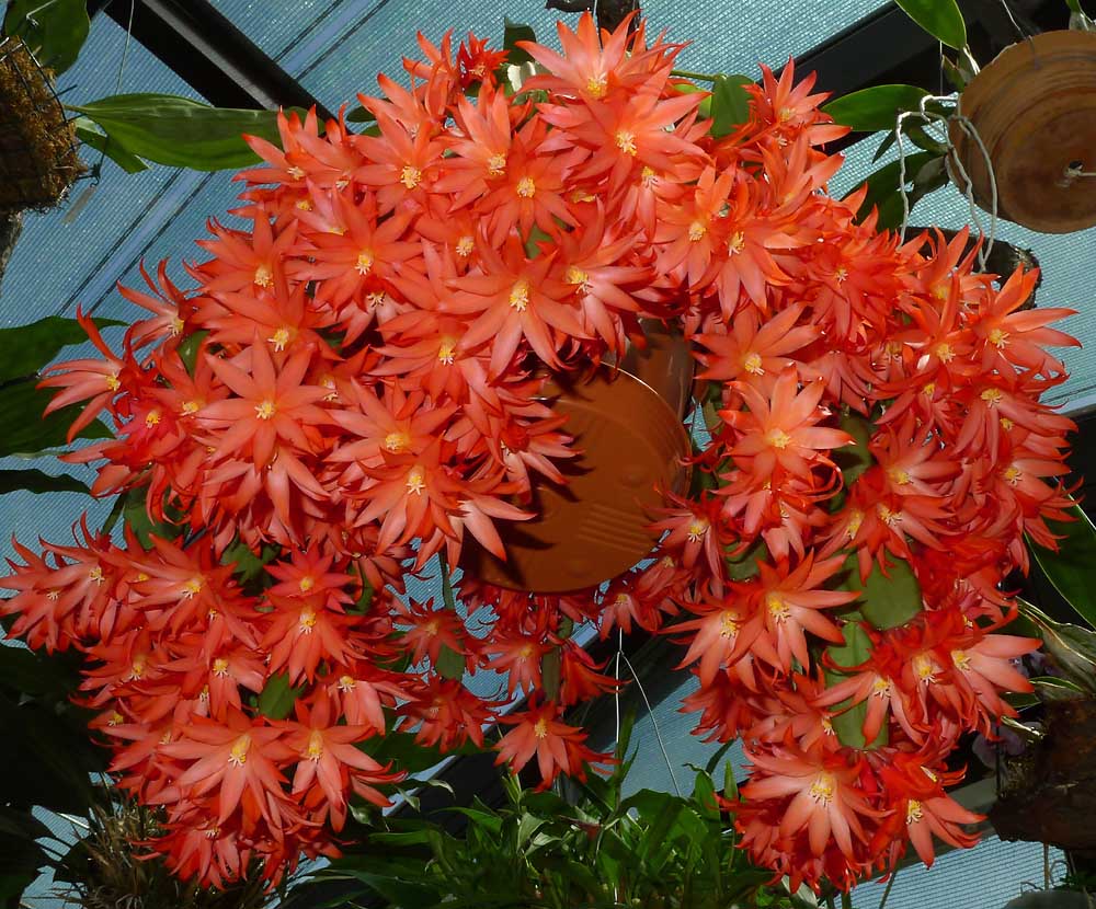 Teď v těch vedrech je velikonoční kaktus celý zakrytý květy.