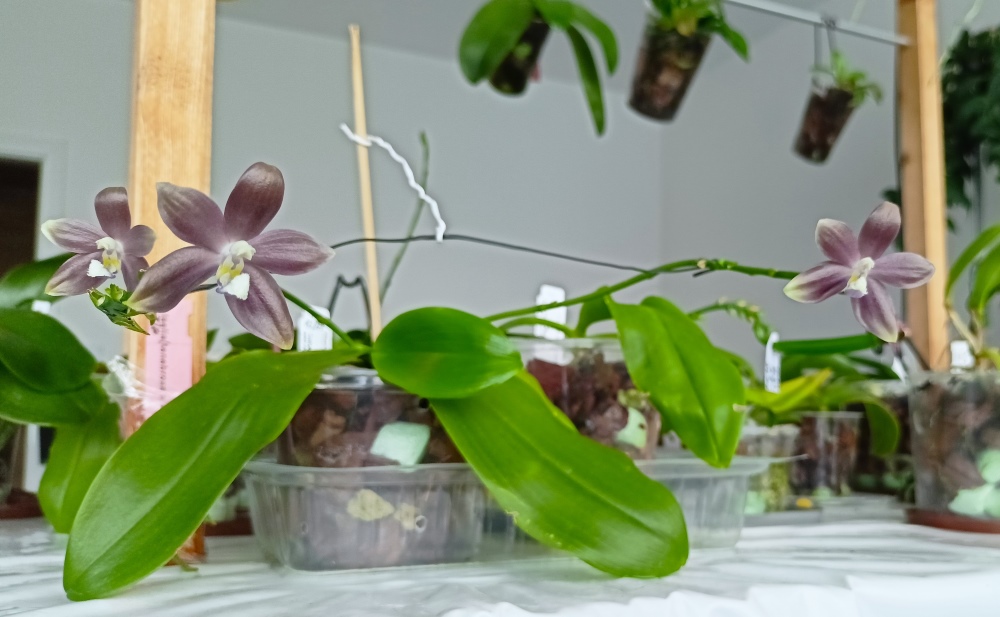Vykvetlo další křížení. Opět naprostá miniatura . Kvete ještě než vyzraje pahlíza. Květ je dvakrát větší než rostlina. Ale může se to změnit až rostlina dospěje. V množství rostlin jsem ji přehlédl takže už květ dlouho nevydrží.