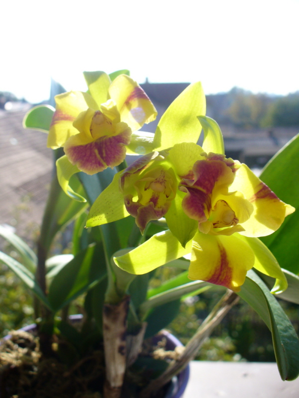 Ahojky,chvalim Masdevalky,strevice atd.Konecne sem muzu hodit tu rozkvetlou katleju.Koupila jsem ji jako odkvetly trs na letosni jarni vystave Lukscheitera.Desne ji to trvalo,ale uz od min.tydne kvete.Podle poupat jsem cekala neco vetsiho,ale i tihle pidizvici- 3 cm jsou pekni.Voni,ale ne moc prijemne.Byly u ni jeste dve pekne pahlizky,ale tem jsem nejak na slunicku upekla uvnitr placky-upozornuji,ze je nemam na parapetu,ale na stolku dost daleko od okna.Jinak to je taky jedna,ktera ma ty znicene koreny.Je presazena,ale moc sanci ji nedavam.Aspon,ze stala jen 100Kc.Treba si vezme priklad z nedalekeho Dendr.Phal,ktere pokvete z 2 pahliz a ma uz i 2 nove rostlinky.Ja a katleje holt nejsme kamaradky.