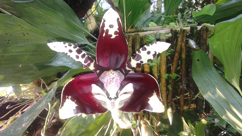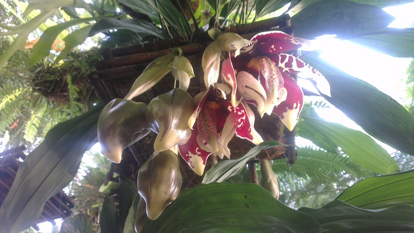 .........tady ještě jedna, co nedávno vykvetla na konci jedné z větví epifytního kmene, bohužel vykvetla nad jezírkem a na cedulku nejde dosáhnout, tak-že pokud se nechci vykoupat, tak nevím, co je to zač. Každopádně se mně osobně líbí takovéto kvetení víc než v košíku, připadá mi to přirozené. Bohužel ne vždy si toho včas všimnu.