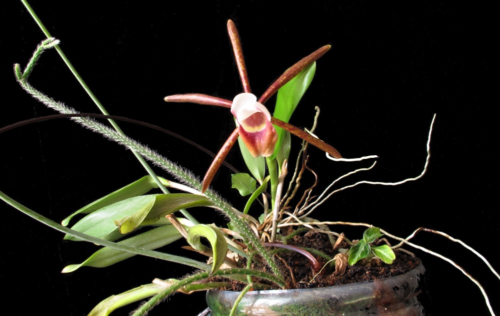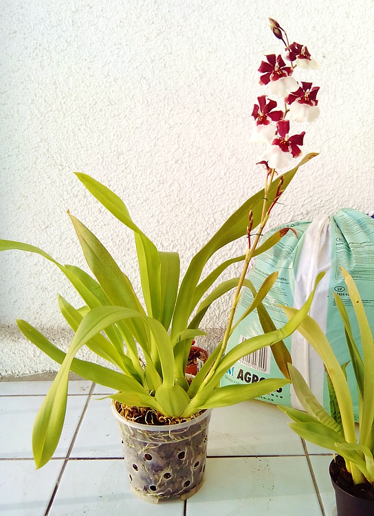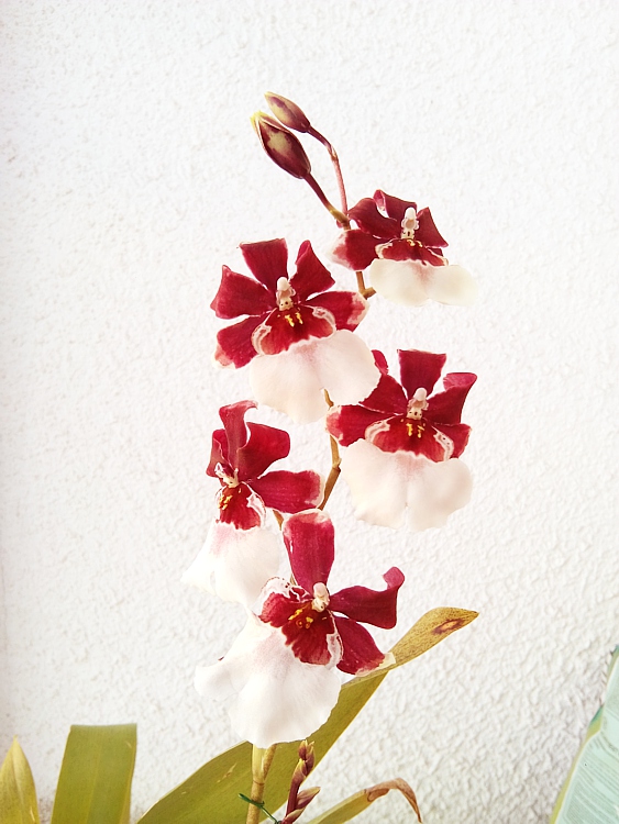 Mne práve rozkvitá Miltonidium Bartley Schwartz 'Highland' AM/AOS (Miltonia Red Pali x Oncidium Honolulu) Fotky len z mobilu. Až rozkvitne úplne, vyfotím lepšie ...