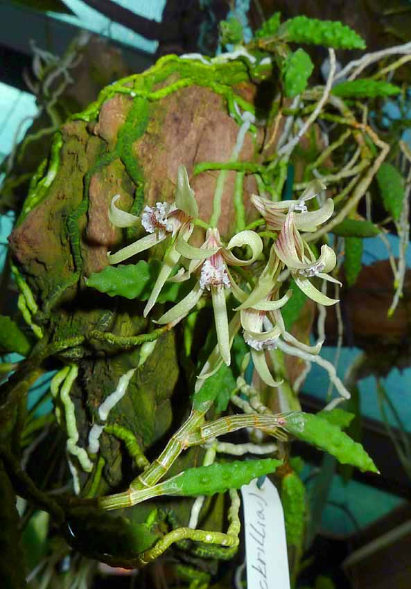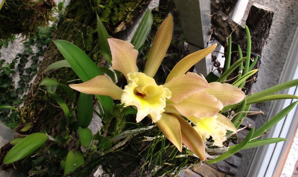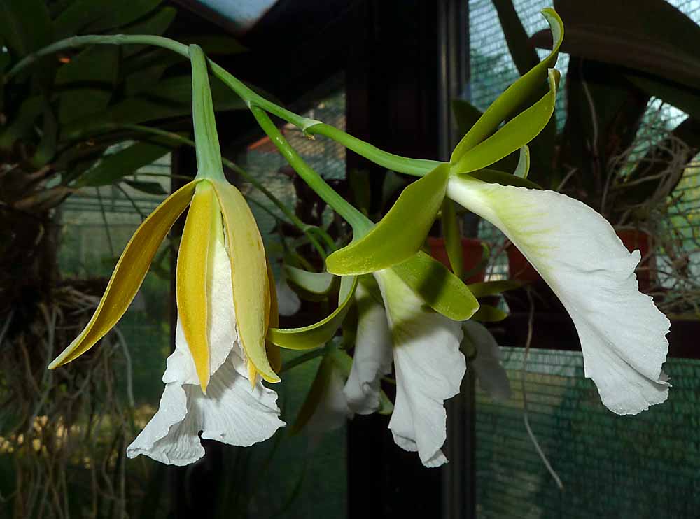Dendrobium cucumerinum kvete výhradně na severní straně podložky. Cattleya Blc. Grenwich "Elmhurst", stálice z Drážďan