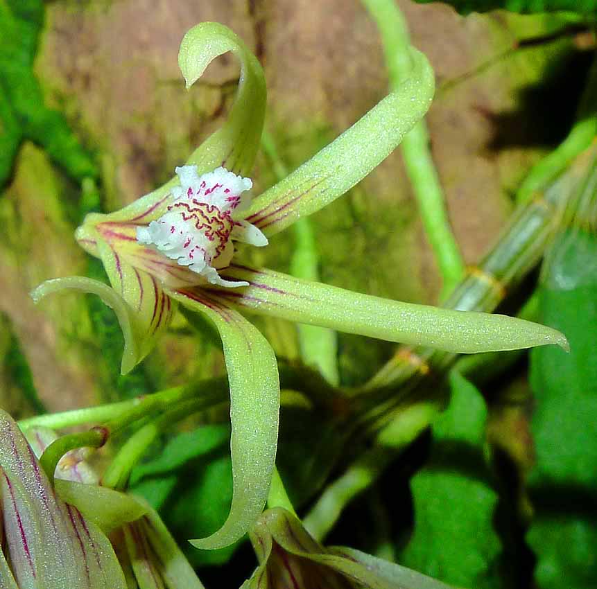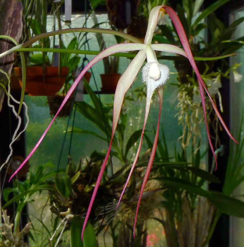 Rozkvetla Brassavola cuculata. Květ je na tak dlouhé stopce že se to špatně fotí
