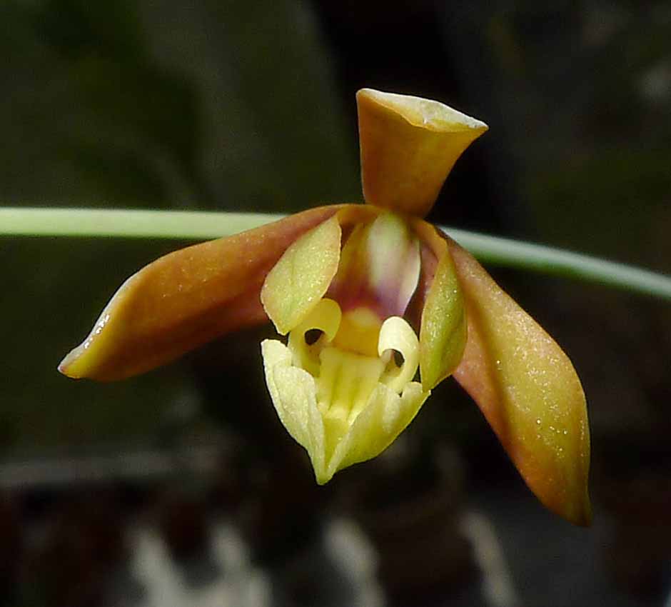 Tak sen o Minivitelince se rozplynul přes noc. Kvítek je tak 1,5cm v průměru. Výskyt Oaxaca v horách nad Mitlou 2000m.n.m. Na dubech. Je fakt, že už tenkráte mi kaktusář říkal, že tam rostlo něco většího a podobného, ale tohle že prý nebylo ono. To asi tedy byla ta E. vitellina. List to má takový modrozelený jako E. citrina. Na tu E. michuacana se podívám, díky za typ. Nyní se to ještě plně neotevřelo a vypadá to takhle.