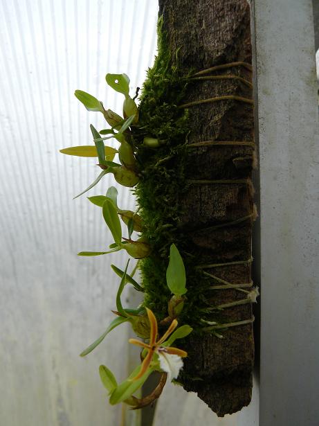 Musím se pochlubit, jak se snaží Oncidium Tiny Twinkle, vyvázané na špalíku. Je to pěkný trsík s šesti stvoly. Fotka sice nic moc, ale pro představu stačí. Nastává ale pomalu problém se špalkem, začíná se rozpadat, takže mě v brzké době čeká převázání, mám obavu o tu kapradinu. S orchidejemi nebude problém, ale kapradina opisuje kmen a je pěkně propletená, takže bude potřeba sehnat špalek o stejném průměru