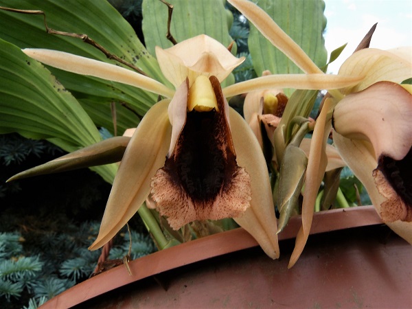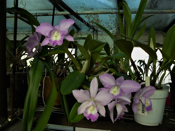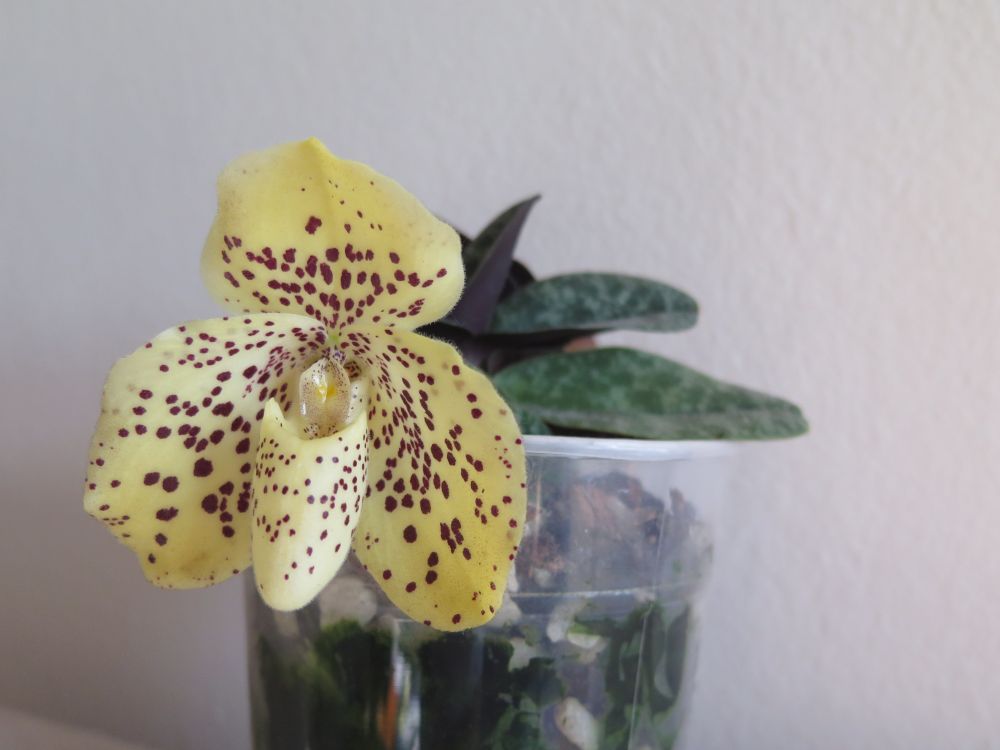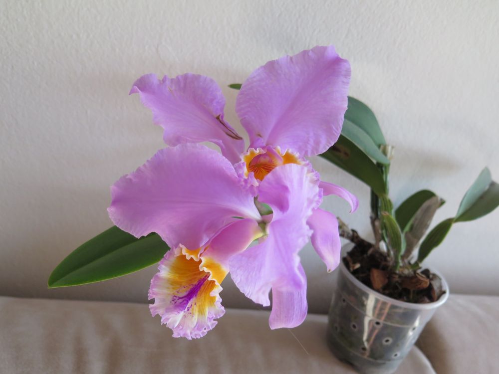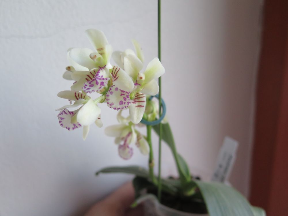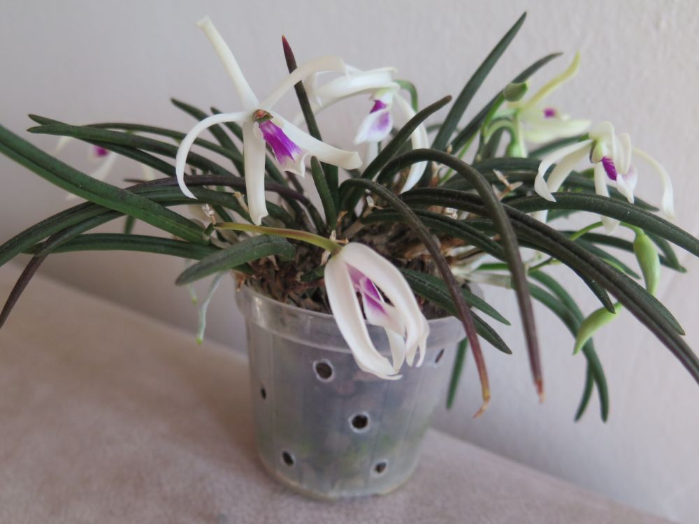 Sedirea nezaslouženě - kupována na jaře v Troji s minipoupátkem, nádherně voní. Brzy jsem ji ustříhla, kytka se mi zdá na kvetení mladá. Cattleya je trochu pomuchlaná, větrem spadla. Leptotes i pafík jsou vděční, kvetou naprosto pravidelně. Martina
