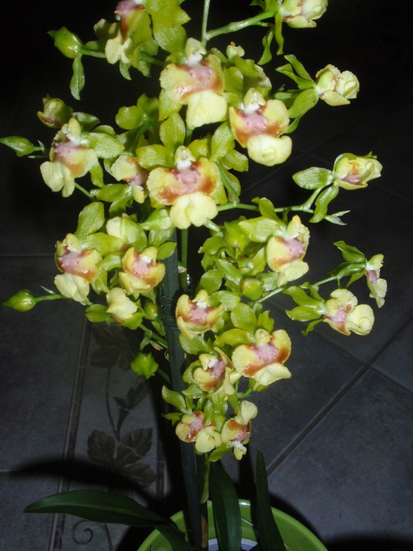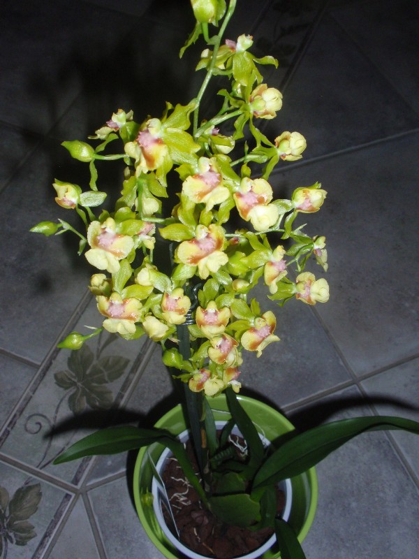 Krasa-chvalim a zavidim vsem.Nino-ja tohle zelene mela uz jednou v kosiku v Hornachu,ale pak jsem ho vymenila s tezkym srdcem za plysovy polstar psa pro syna a aby taky manzel videl,ze jsem schopna si neco nekoupit.meli ho i v Ikee-ja tomu rikam Oncidium-mistri urceni,ti to reknou presne.Desne se mi libilo jak voni.Gabi-ta oranzova Asca je nadherna.Je zajimave jak fotky klamou velikosti kvetu.Ja jak jsem fotila na makro tu posledni 3 kvety u katleje,tak ackoli mely jen 3cm,vypadaly obr.Petre-takove scvrkle pahlizy a takovy pekny kvet.Marenka a ost. taky moc pekne.Me se na denrdobku nobile udelaly zase pupinky,tak jsem ho soupla na chodbu-predpokladam,ale ze jako loni zas jen udela keiky nebo nic.Mne proste nejde.Navic ma mrcha tu trasnenku a Quadrix ani Talstar jsem nesehnala.Zkusim to u nas s tim Talstarem.Kamaradce kvete krasny velkokvety strevic,co jsem ni loni dala jako odkvetlou rostlinu k Vanocum-mne samozrejme ne.Mam radost z fotek ktere sem davate,je to radost pochlubit se a potesit s " prateli orchidejari".