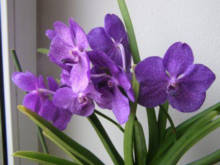 Jeden phal-hybrid, který mám moc ráda, Maxillaria violaceo-punctata od dubna nepřestala kvést a druhé kvetení Ascda. Princess Mikasa Blue, během letošního léta.