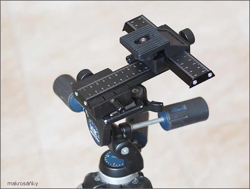 Nebudu se rozepisovat o tom,co byste měli dělat Vy,ale co musím udělat já,aby fotka za něco stála... Je několik věcí,které považuji za nutné: STATIV. Bez něj fotografii "nepohyblivých" (nechci říkat "neživých") motivů pokud možno nedělám. Na stativu mám trojcestnou hlavu,která umožní nastavit foťák do libovolné polohy. K focení hodně velkých detailů používám makrosáňky (viz foto),to ale pro dobrou fotku není nezbytné. Ostření přepnu na MF (manual focus) a doostřuji pomocí sáněk.V domácích podmínkách (není vítr) nemusí být stativ nijak robustní,ale měl by odpovídat hmotnostně foťáku. Jako nouzovka může posloužit i pytlík s fazolemi (rýží,čočkou,pískem),do něhož si foťák "lehne" a ani se nehne... Zásadně používám samospoušť,nejlépe 12 sec...