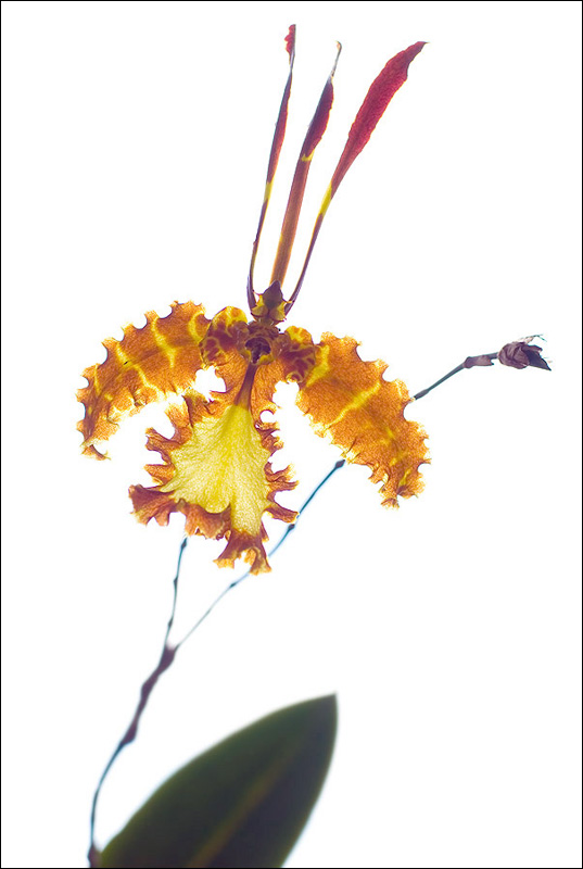 EvaJ píše: Djev, a tohle se dělá jak ? Je to moc zajímavé . Nejjednodušší je vyfotit orchidej proti zcela bílému dobře osvětlenému pozadí, ale musí být nastavena manuální expozice (nebo bodové měření na květ s mírnou přeexpozicí), anebo se za kytku dá poloprůhledný papír nebo plátno a za ním se nechá blesknout externí blesk . Při následných úpravách v editoru rovněž nenecháme automatické úpravy , ale doladíme ručně (autmatika má tendenci udělat na fotografii pravidelné rozložení jasů a stínů, ale my zcela černou nechceme a chceme fotku lehce tzv. "přepálit")