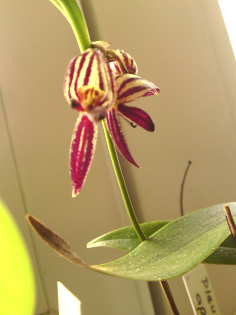 Fotka je dost mázlá, asi to nebude ono, ale připomíná mi kresbou můj nový Pleurothallis aporosis (květ vyrůstá z listu, to asi u té Vaší není, že? opravdu to nevidím).