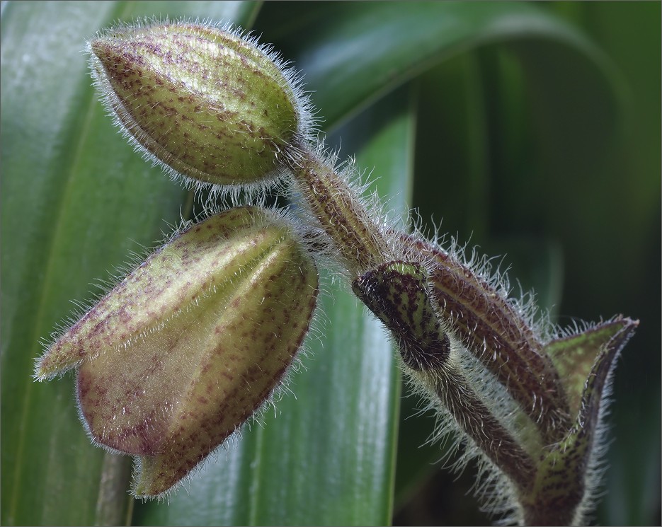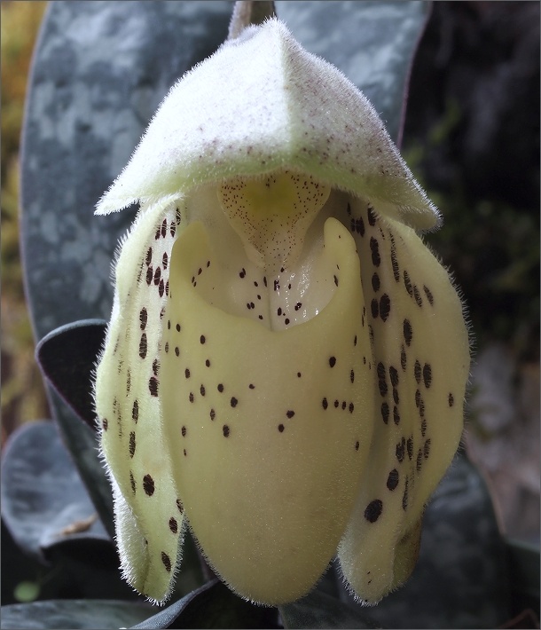 to felina- Paphiopedilum wenshanense objevili číňani v provincii Yunnan v roce 2000.Je velmi podobné hybridnímu P. conco-bellatum. A pěstování - já nevím,mám ho od čtvrtka.Ale pokud mu člověk dá,co potřebuje,musí vykvést ...  P.S..."Vetřelec" - to je přesný...