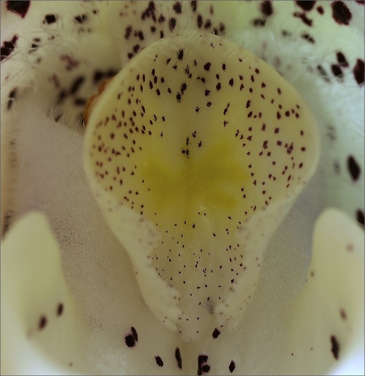 Tak bych si zkusila tipnout,odborným názvem to nevím,ale může to být uvnitř květu Paph.concolor?