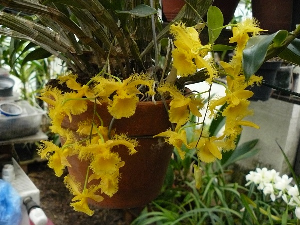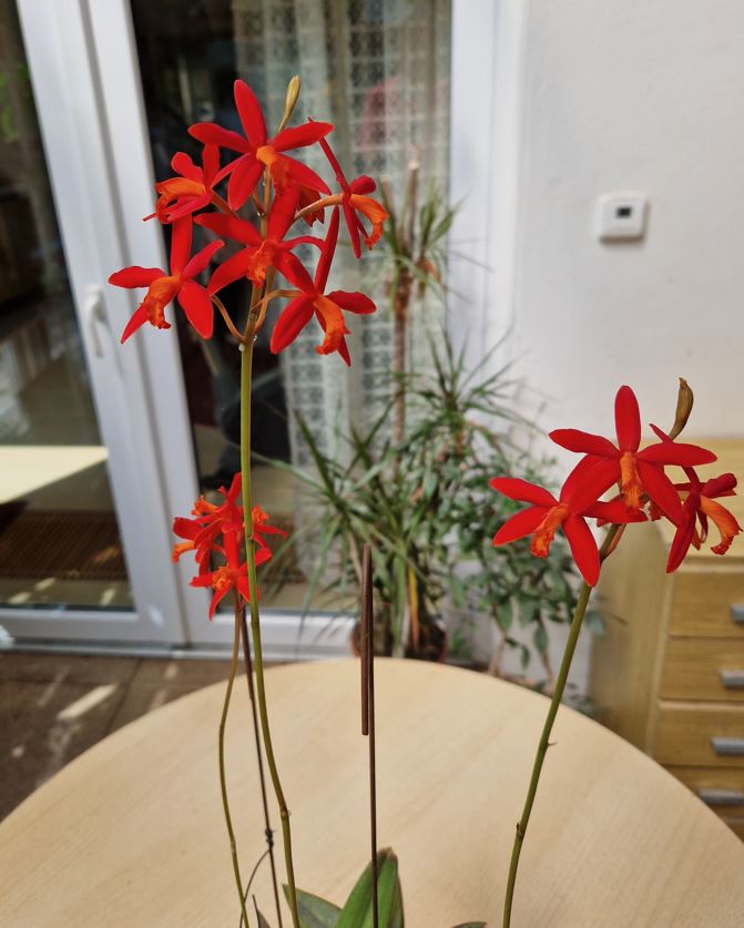 Encyclia vitellina si střihla jedno kvetení trochu mimo sezónu, přes nedostatek světla je pěkně vybarvená; kořeny mi v kůrovém substrátu nějak extra nerostou, na montování na holou podložku si moc netroufám kvůli občasným výpadkům v zálivce, které myslím tahle kytka zrovna netoleruje... T.