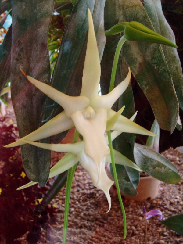 To samozřejmě není moje orchidej. Tahle kráska kvete v botanické Liberci a popsal jí mám pocit Charles Darwin a vzápětí podle ní popsal i opylovače, který se v druhém jméně dá volně přeložit jako předpovězený.Pokud se nepletu??? To jenom pro zajímavost. Samozřejmě bych jí moc chtěl a vůbec další tohoto rodu. Jsou moc hezké a patří s Vandami do jedné rodiny....