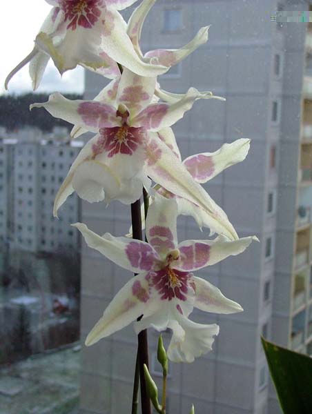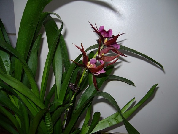 Ahoj, myslím že je to mezirodový hybrid Vuystekeara (Cochlioda x Odontoglossum x Miltoniopsis). Mám podobný na světlém severním okně, přes léto ho dávám ven do stínu, protože pro indukci květů potřebuje kolísání teplot. Po Miltoniopsis zdědil bohužel "harmonikování" listů jakmile mu nevyhovuje zálivka (to už je vidět i na tvém druhém obrázku). Mám zkušenost, že tu si musí každý pěstitel vychytat sám, já zalévám 1x týdně. Substrát prostě nesmí být moc mokrý, ale ani přeschlý.