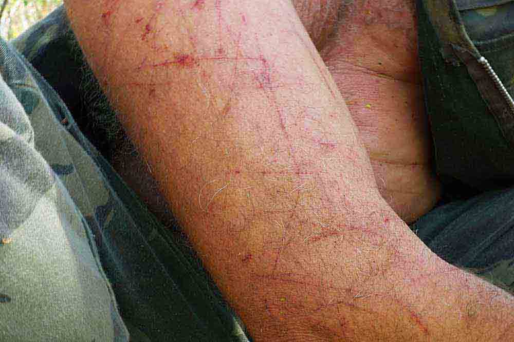 Oni ani ty kaktusy nerostou v přírodě jako v botanické zahradě. Něco je na skalách nedostupné tak, že by člověk potřeboval horolezeckou výbavu a někam jsme se ani nemohly dostat kvůli trnitým akáciím. Snímek mojí ruky na konci každé cesty myslím dokládá, že to mnohdy není "procházka růžovým sadem"