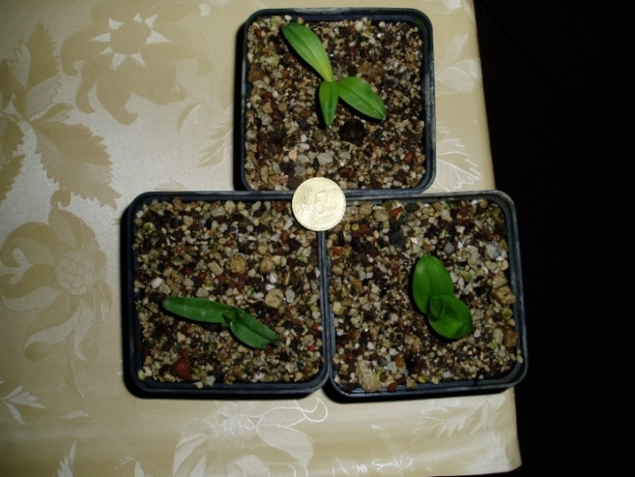 To uprostřed je 50 centů. Jen mám strach, že už jsou moc narostlé na to, abych je šel zítra zakopat na zahradu. Co myslíte, bude mrznout??? Už jsem viděl skákat přes silnici žábu, tak by snad nemuselo. Jo měl tam také dost jazýčku (Himantoglossum hircinum), ale jak se prodejce jmenoval opravdu netuším....