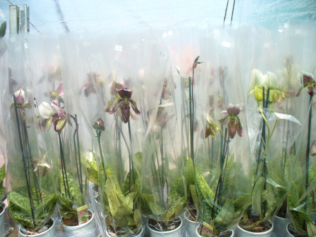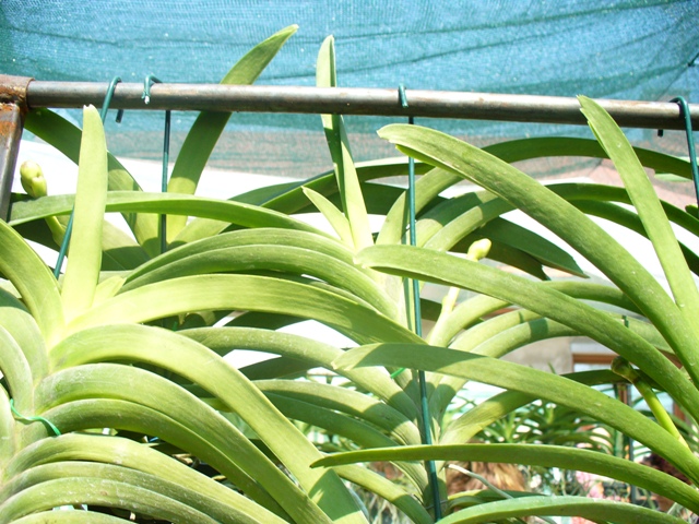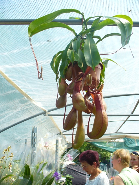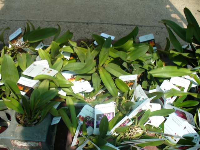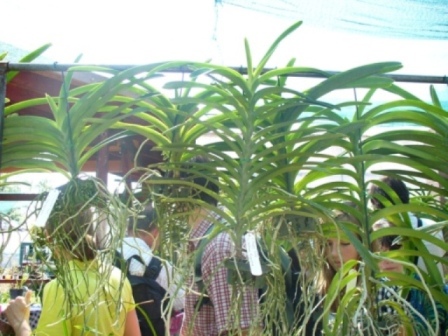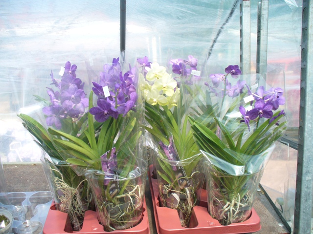 Jinak v zadu byl prodejni stan jako vzdy-tam jsou faliky,strevice,Oncidka,ananasy.katleje aj.Venku bromelie,kaktusy aj.U Vand vepredu je celkove sekce s botanickymi orchidejemi-ruzna Dendrobia,Rhynchostylisy,Erie.....Lidi spousta jako vzdy a desny hic.Nabidka bych rekla,ze byla loni a predloni lepsi.Odkvetle rostliny meli na 2 mistech,ale zadny zazrak-hlavne Cambrice a Cymbidka.Je to tam spis pro ty,co jedou pro neco urciteho.Vand opravdu vyber ale clovek musi cekat za malo penez (400Kc) spatne koreny,ale rostliny se doma vzpamatuji.Ja doufam,ze mi ten vyhon neuschne a bude holka pekne modra,kdyz uz mi nevysly ty,co jsem chtela.Mit dost mista,tak si Vand naberu vic.Musi clovek ale vedet jak vypadaji barevne,protoze ani on to moc nevedel a nemel to tentokrat ani dnes na internetu.Jsem ale vpodstate spokojenost.Pridavam fotecky.
