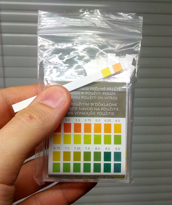 - papieriky na testovanie pH od fy. Remedicum (zdravotnícke), rozsah pH 4.5 - 9, použito cca 20 ks ? Cena 100,- Kč