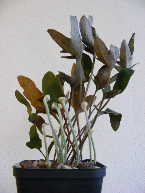 normální formy Pyrrosia lingua mají jednoduché, celé, špičaté vějířovité listy, které jsou poměrně tuhé.Víš jak by měla vypadat ?Asi tak.Snad je mrazuvzdorná proto ji možná sháníš. Mají ještě Pyrrosia porosa,Pyrrosia rugosa-ta by snad měla být delší listem.
