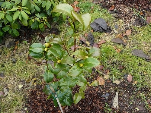 Tak právě rozkvetlý kvítek 30.12.2022 a nádherně nasazené japonské Kamélie na květ, který se rozvíjí podle počasí koncem dubna až počátkem května.