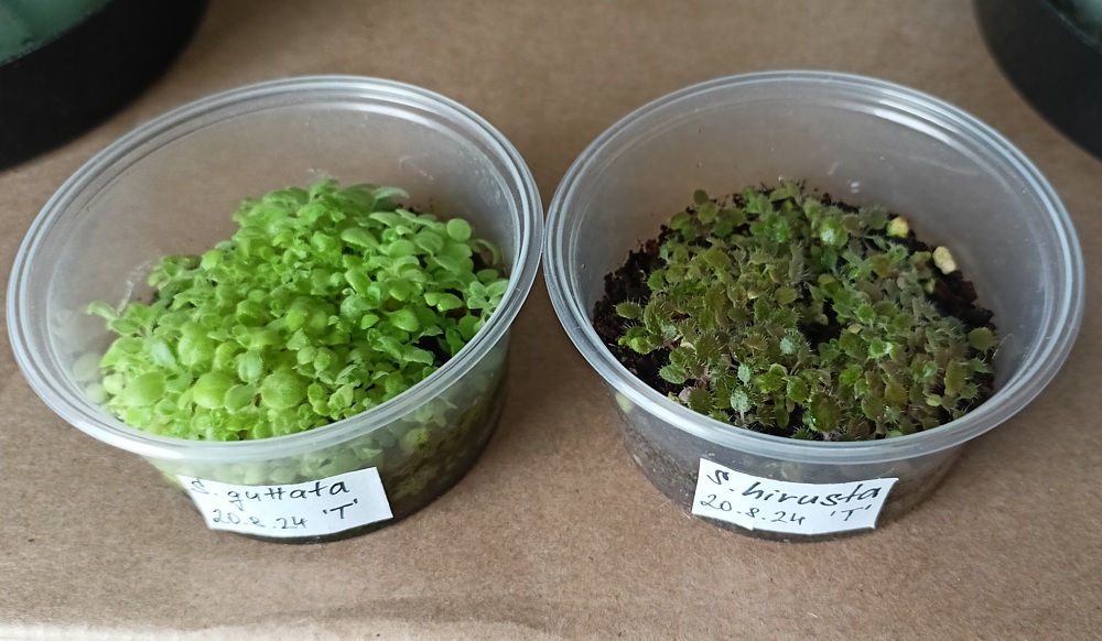 Podarilo ... Ďakujem Trvalo však dosť dlho, než semená začali klíčiť - už som si myslel, že z nich nič nebude, ale nakoniec predsa len vyklíčili ... Vysieval som len nepatrnú časť semien (zbytok mám v chladničke). Takto vyzerajú k dnešnému dňu - stále dosť malé. Nechávam ich ešte povyrásť, pretože mám strach pikírovať takéto drobotiny (priemer krabičky 6 cm). A čo Vy - S. pusilla vyklíčila ??