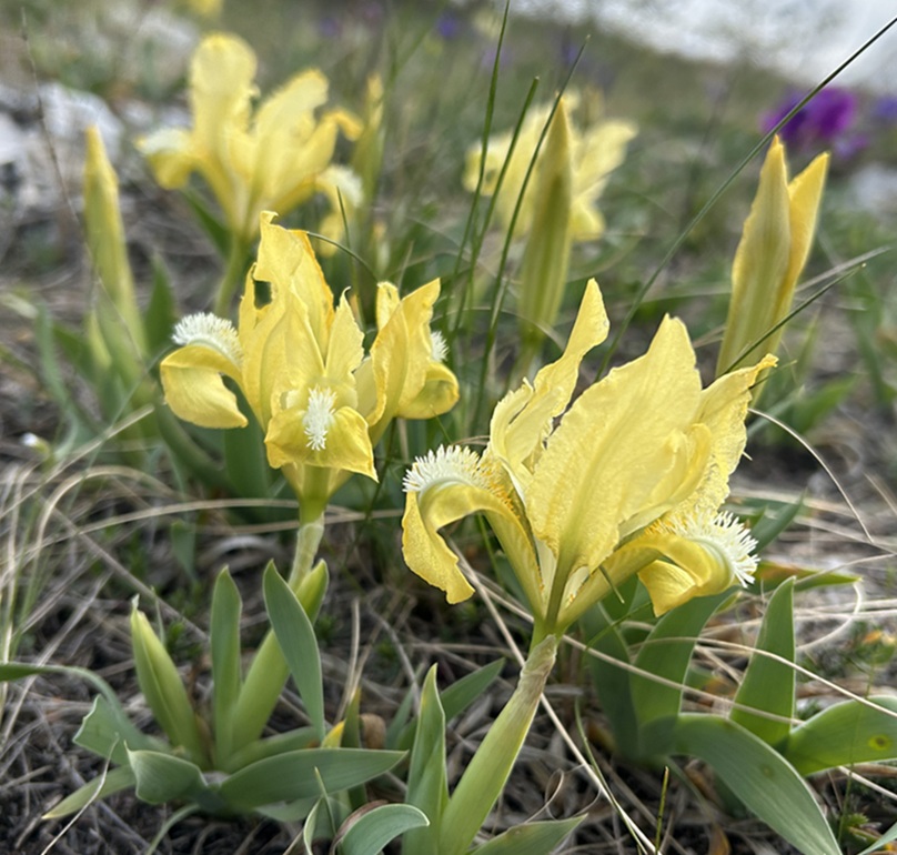 A teď něco z volné přírody. Začátkem týdne jsem byl pracovně v Mikulově a našel jsem si chvilku na Tanzberg čili Svatý kopeček. Vůbec jsem netušil, že tam v tuhle dobu kvetou kosatce nízké (Iris pumila), zjistil jsem to dole pod kopcem na tabuli u startu naučné stezky. Vyběhl jsem nahoru a začal hledat, za zábradlím dole pod kaplí sv. Šebestiána jsem zahlédl krásný modrý kus, na focení daleko. Ale pod zvonicí na jihovýchodním svahu jich jsou tisíce, tak jedna ochutnávka té neuvěřitelné variability (blbá fotka, vím) - barva květů jde od žluté přes různé narůžovělé, fialové a světle modré odstíny až k temně modrým květům. A dvě z mnoha forem. Každá kytka je originál, nenajdete dvě stejné... Bezva zážitek. A koncem dubna by měl rozkvést ještě kosatec písečný (Iris arenaria), ten je trochu vyšší a pouze žlutý. T.
