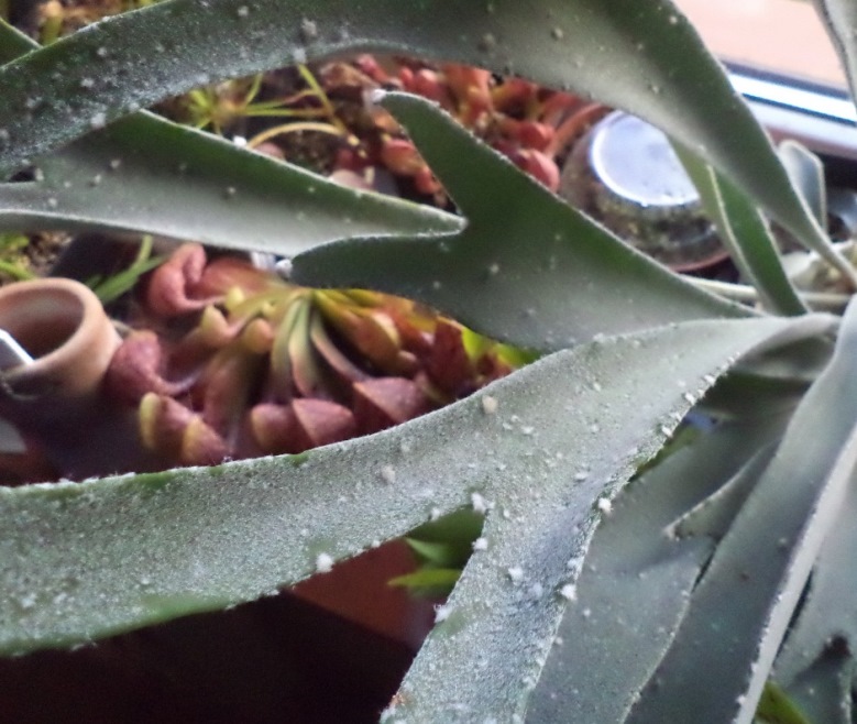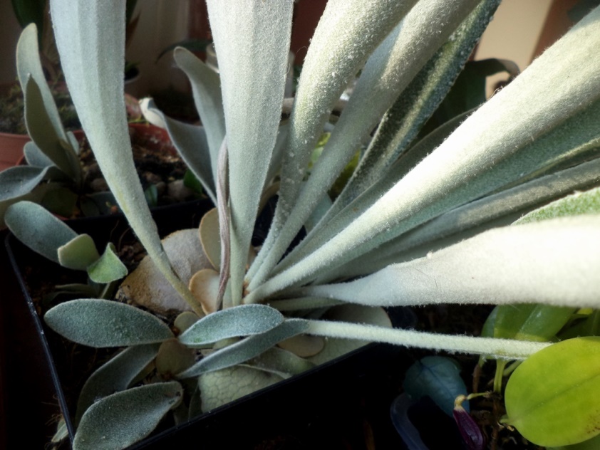 Nedávno jsem na sousedních kytkách řešila puklice, ale na této parožnatce nebyla ani jedna - přes ty chlupy prostě nemají nárok...