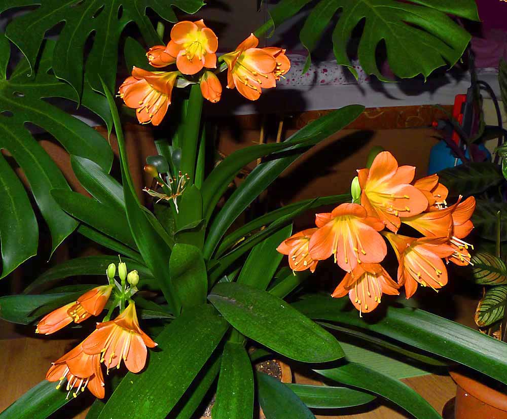 Klívie kamelie- květina našich babiček a Aechmea fasciata.