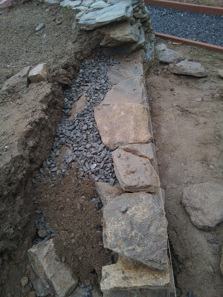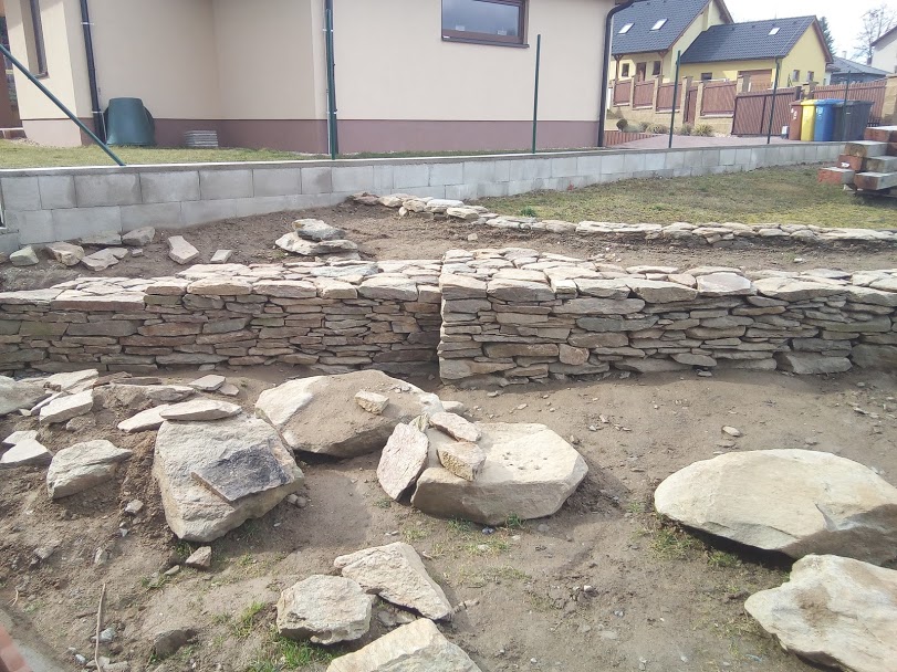 Jen pro představu, v té suché zídce je kvůli drenáži a zpevnění vysypaná jedna V3S šterku 16/32mm...
