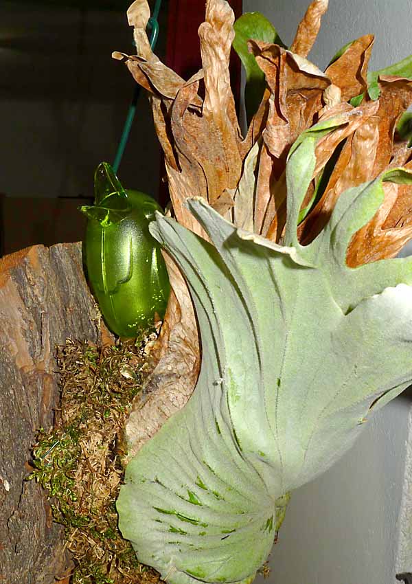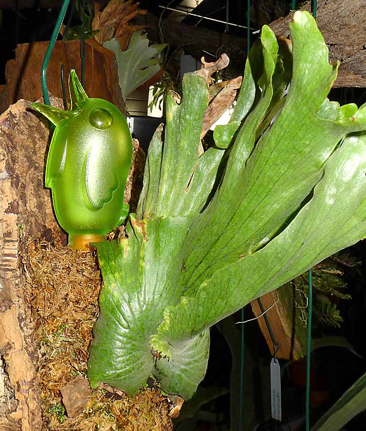 No zajímavé. Jen bych se trošku bála poklesu teplot a mokra . Ten rozměr zavlažovače je 5/5/16cm. asi. Vody se tam moc nevejde. Ale stejně bych raději jen trochu zalila a nechala vyschnout. To Plat.coronarium je citlivé na chlad údajně již 15°C je pro něj kritická.(Studnička-Kapradiny) Psal si že tuhle teplotu máš-ale vždycky to tak není v celé zz. Plat.bifurcatum se dá pěstovat v chladnějších i teplých bytech. Proto je vděčnější. Podařilo se mě sehnat Pirosii hastatu(je v košíku jako hlídačka) ta když povadne, tak až pak zalévám celý košík. Nebo prostě osahám zezadu substrát jestli je mokrý. Není v tom žádný pravidelný čas. Zkoušet se dá, tak třeba ty zavlažovače nebudou vadit vzhledem k mechu ,který tam máš.Jsem zvědavá jak ti to poroste. Škoda že tu není víc pěstitelů jsou to přece pěkný kytky.
