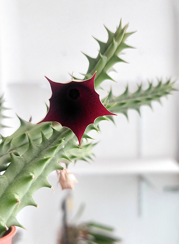 Huernia keniensis - kvet je veľmi tmavý, takže sa nedá dobre vyfotiť ...